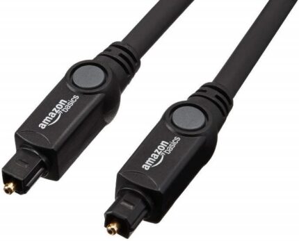 An optical audio cable, also known as a TOSLINK cable, is a type of fiber-optic cable used to transmit digital